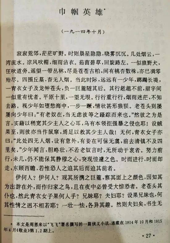 Some time ago, someone dug up a novel written by Premier Zhou Enlai as a teenager. When the Prime Minister was only 16 years old, he wrote a chivalrous story "The Woman Hero" under the pseudonym "Feifei". Don’t say it. It’s funny.