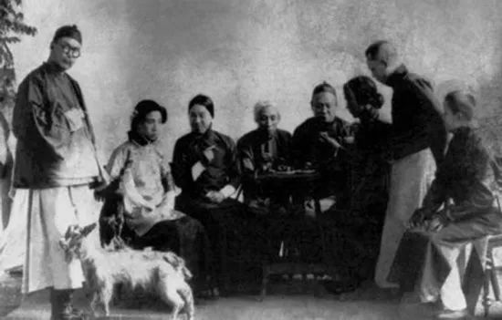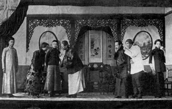Zhou Enlai (second from left) plays Fan Huiniang in "Aunt Qiu".