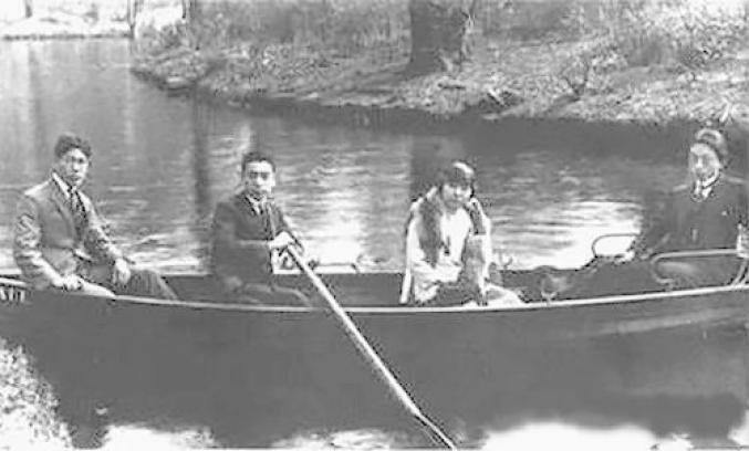 In the spring of 1921, Zhou Enlai joined the Communist Party of China (CPC). This is him and party introducer Zhang Shenfu (first from the right) and Liu Qingyang in Wansai Lake in Berlin, with Zhao Guangchen on the left.