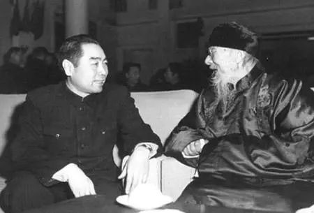 Zhou Enlai meets Peking Opera master Zhang Chunqiu.